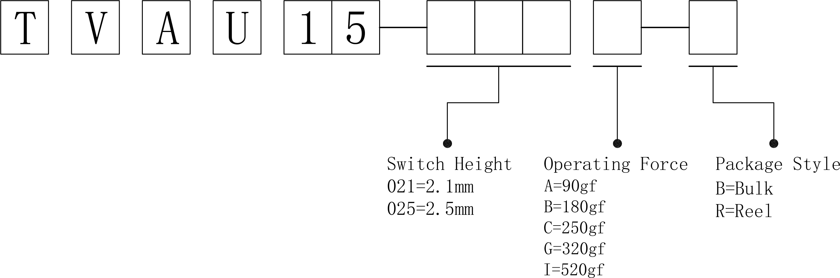 | Mechanical performance | Operating force | A:90gf B:180gf C:250gf |