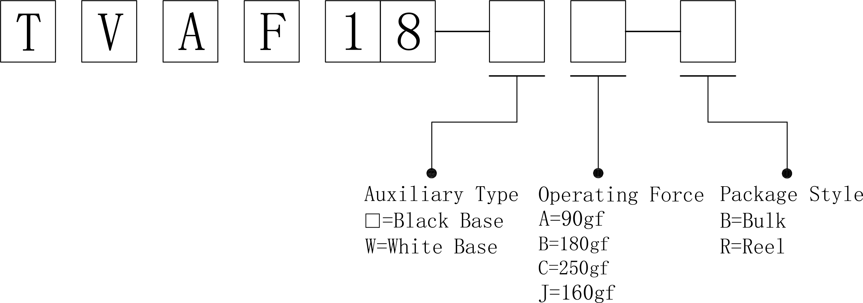 | Mechanical performance | Operating force | A:90gf B:180gf C:250gf J:160gf |